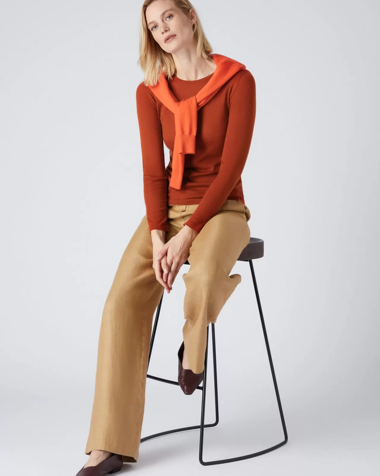 Our Superfine Is Very Popular, Here We See The Long Sleeve, Round Neck Cashmere Top.