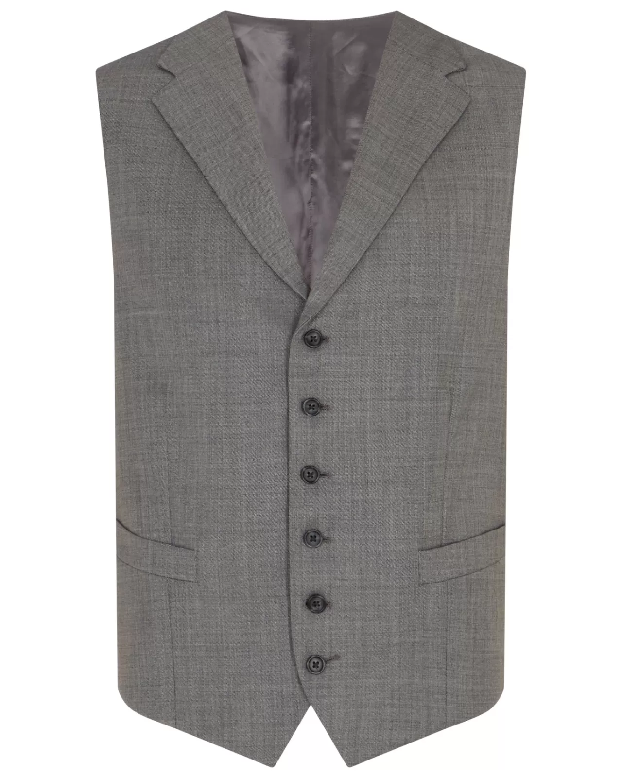 – Waistcoat: Single Breasted, Six Button Fastening,Grey Viscose Satin Lining, Notch Neck Lapel, Welt Pockets, Standard Back Strap With Buckle Adjuster