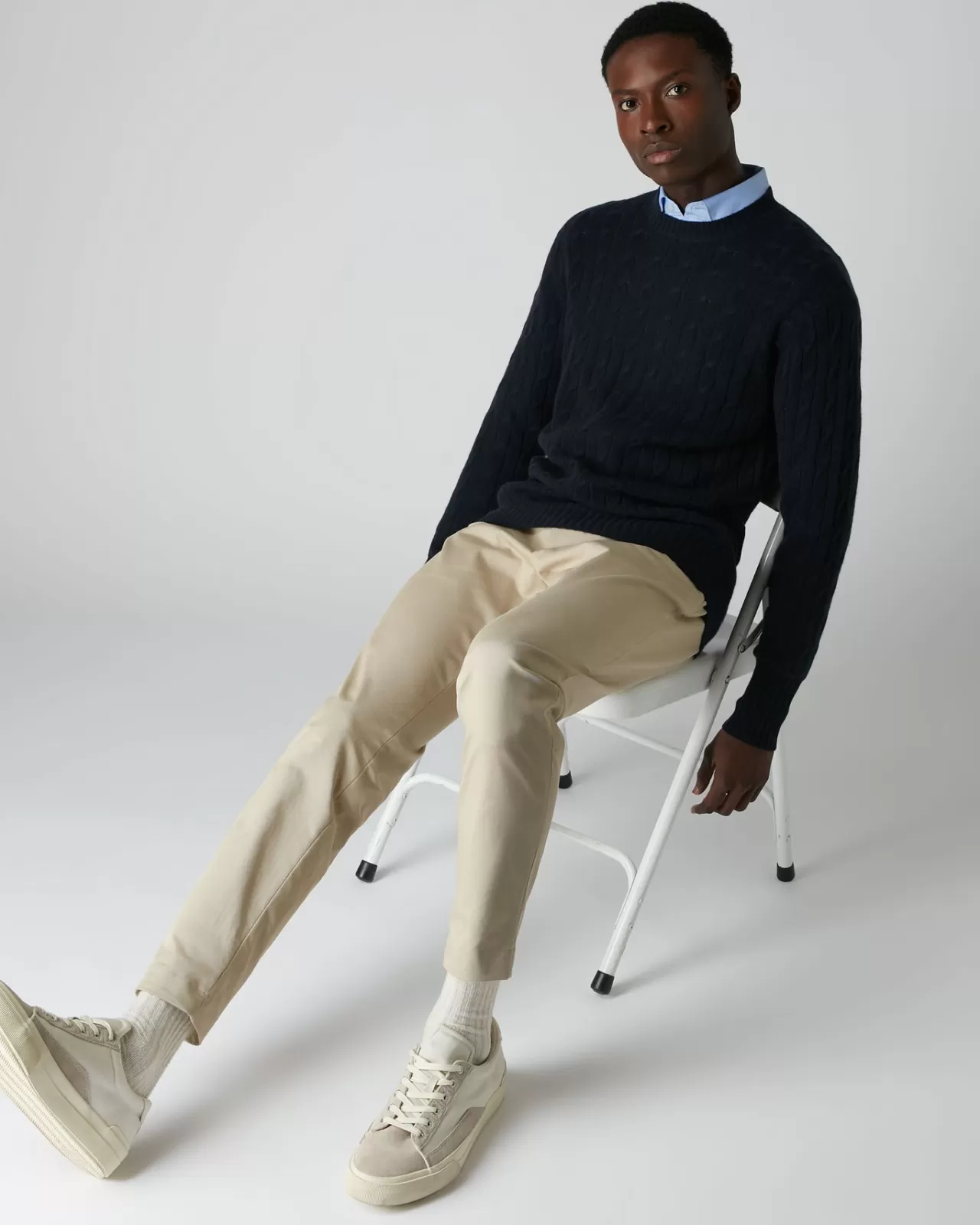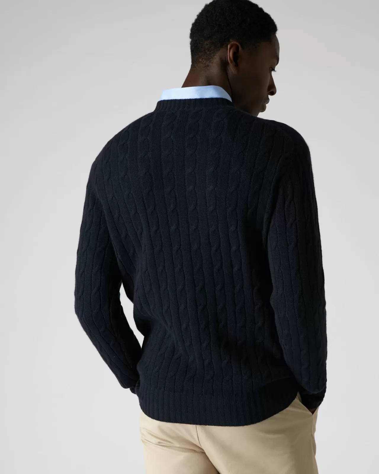 Our Cable Crew Neck Sweater Is Inspired By The Sweater Worn By Bond When His Driving Skills Are Evaluated, He Embarks On A High-Speed Race In His Aston Martin Db5 Against Xenia Onotopp’S Ferrari In The Mountains Near Monte Carlo, In Goldeneye (1995).– Made From 100% Mongolian Cashmere