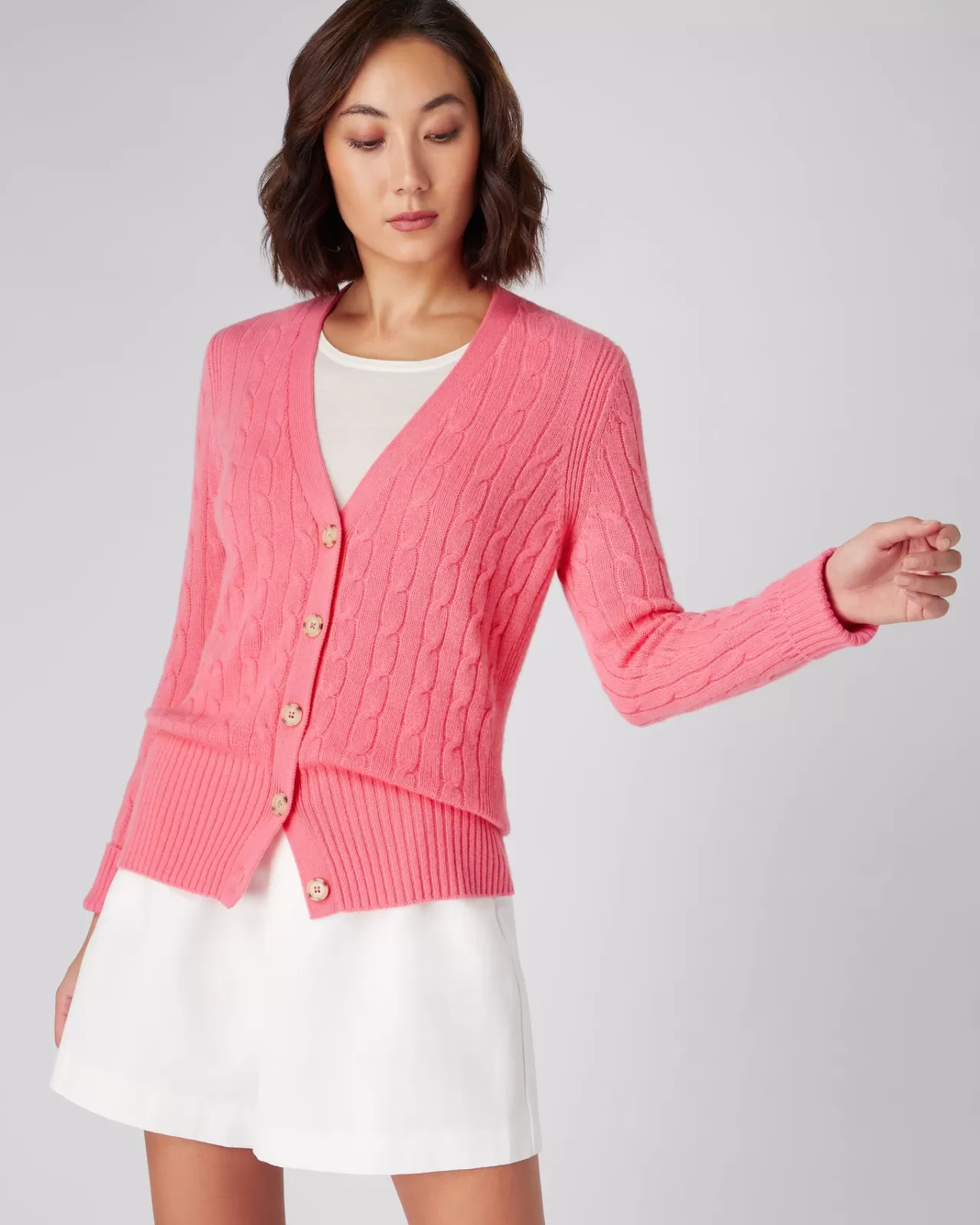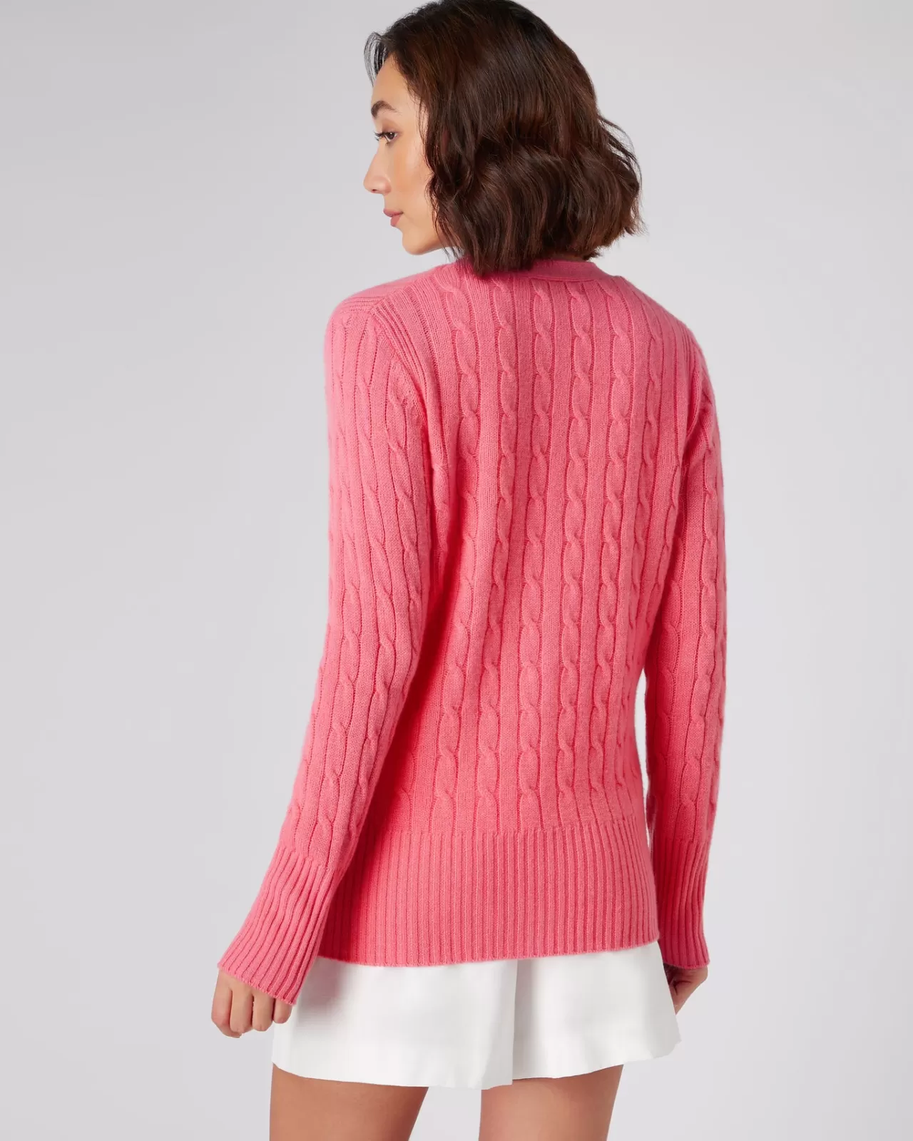A V Neck Cashmere Cardigan In A Stunning Cable Knit.