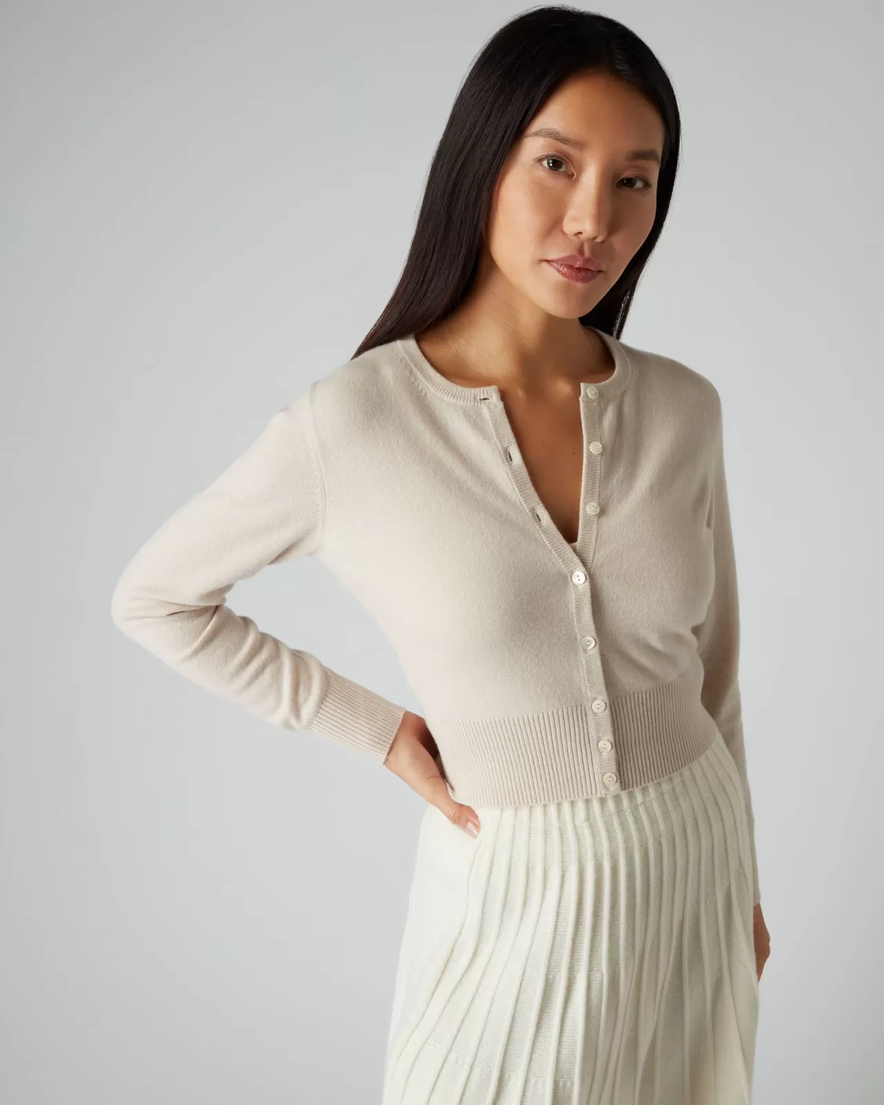 This Style Is A Favourite For Many – The Long Sleeve Cropped Cashmere Cardigan.