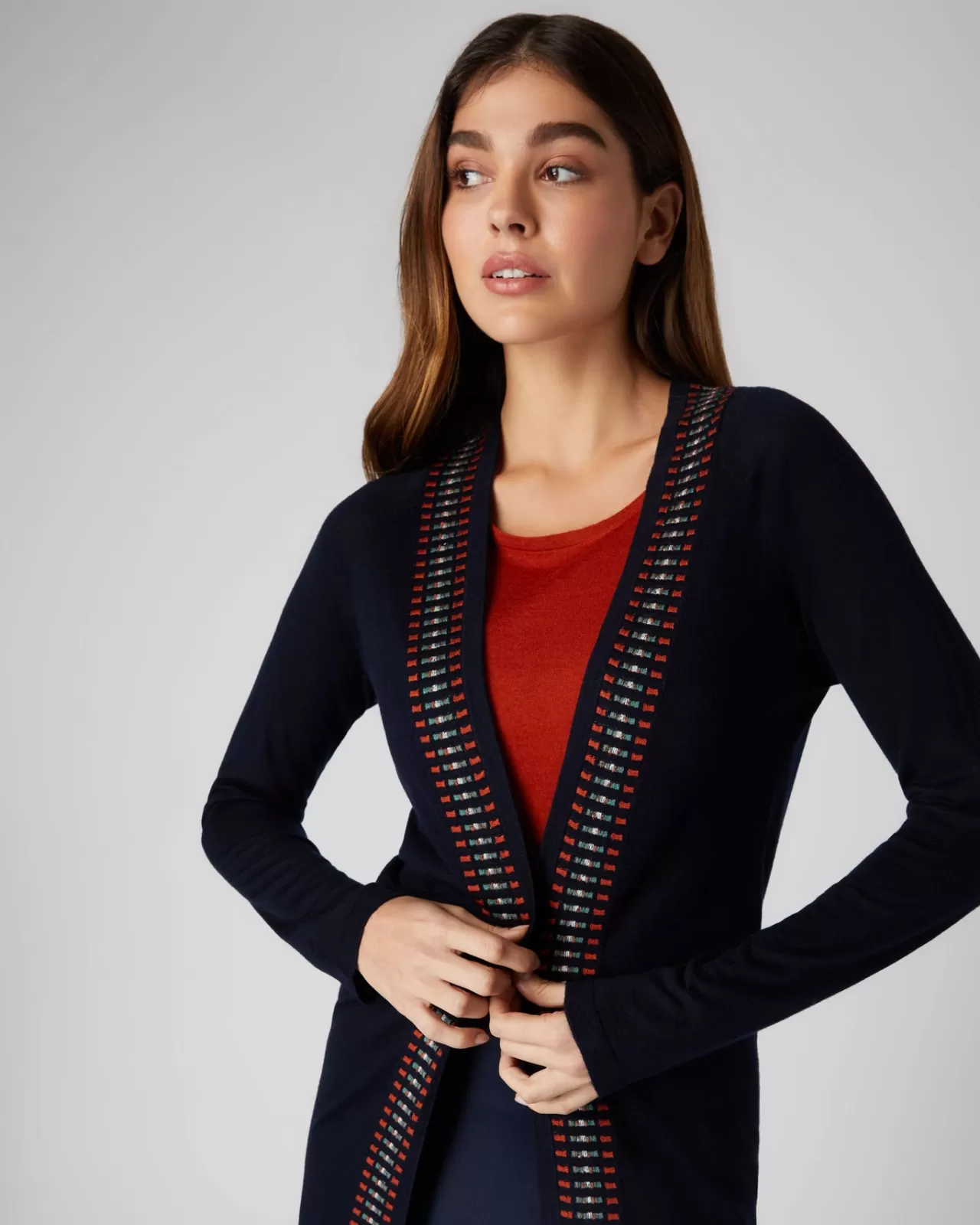 A Gorgeous New Detail On A Popular Longer Length Cardigan Style.