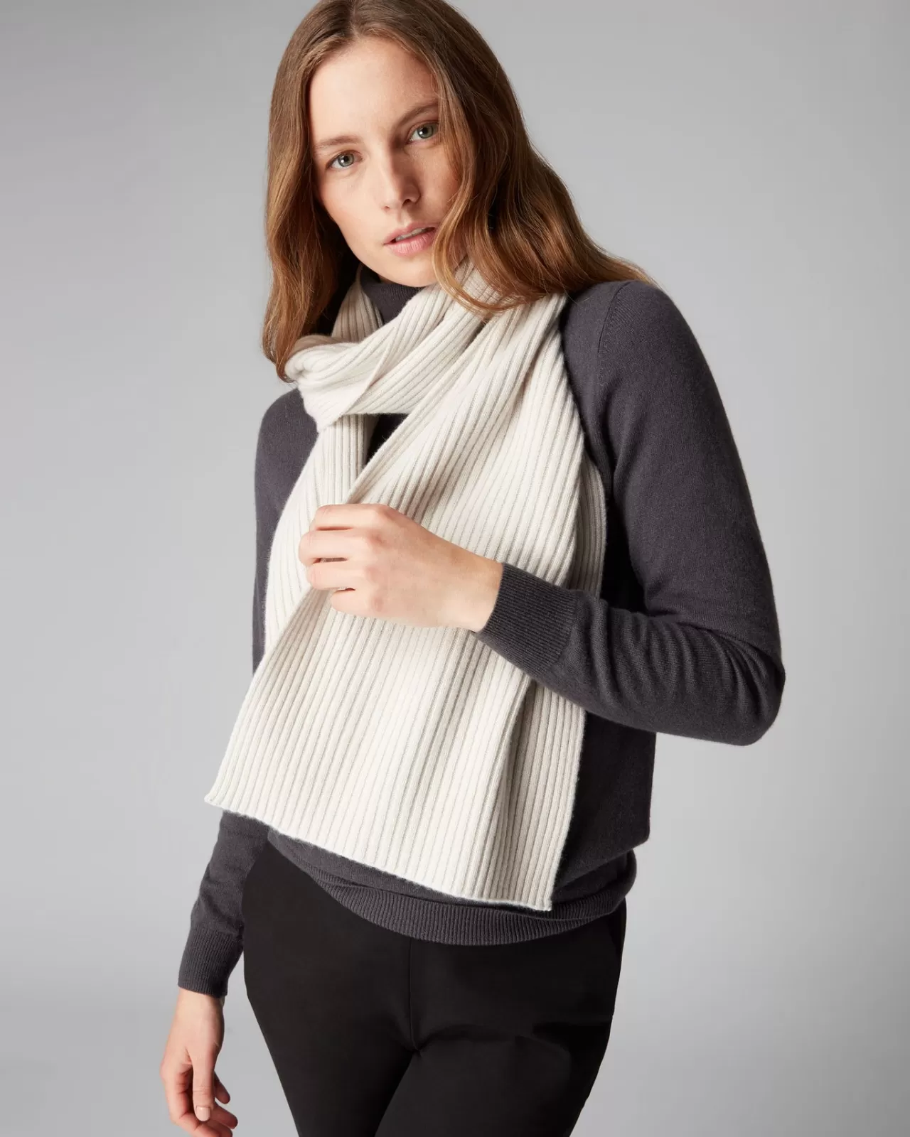 A Truly Exquisite Cashmere Ribbed Knit Scarf, Amazing With So Many Outfits.